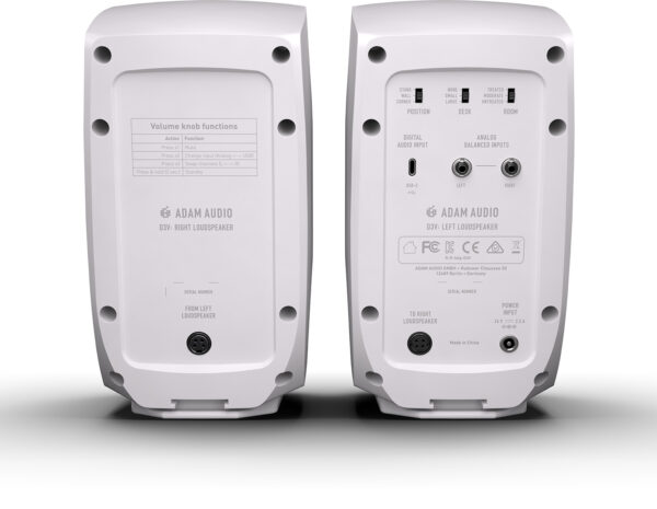 Conçu pour les auteurs-compositeurs, les producers et les amateurs de musique, le D3V est disponible en noir ou en blanc et offre la qualité renommée d’ADAM Audio de près et de manière pratique. Chaque paire amplifiée est équipée de woofers en aluminium de 3,5 pouces, complétés par des radiateurs passifs des deux côtés pour une réponse dans les graves jusqu’à 45 Hz.