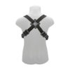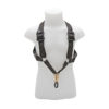 Harnais avec sangle en nylon, 5 points de réglage, mousqueton à pompe en métal plastifié.