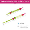 Grâce à sa conception transparente, la flûte à coulisse offre une perspective unique, permettant de voir les ajustements physiques qui influencent les sons produits. Cette transparence aide les utilisateurs à comprendre directement comment les variations dans la longueur du tube affectent la tonalité des notes, rendant l’apprentissage des principes acoustiques à la fois intuitif et interactif.