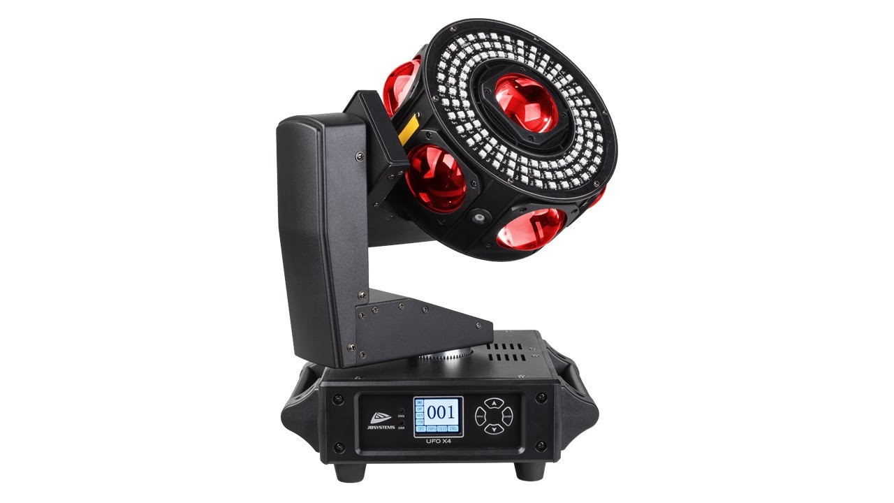 Effet multi-lumières 4-en-1 intégrant lasers, LEDs stroboscopiques, LEDs RGBW et LEDs RGB pour une large couverture et des effets dynamiques. Fonctionnement en DMX, autonome ou maître/esclave, écran LCD, connecteurs XLR 3 points et powerCON, compatible DMX sans fil
