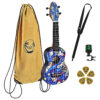 - Livré avec accessoires (accordeur clip, courroies, médiators, housse à cordon)