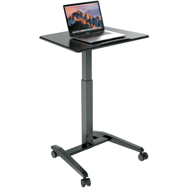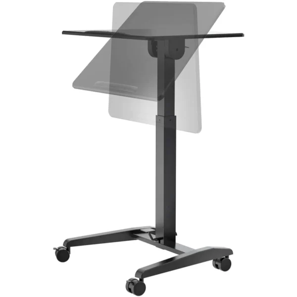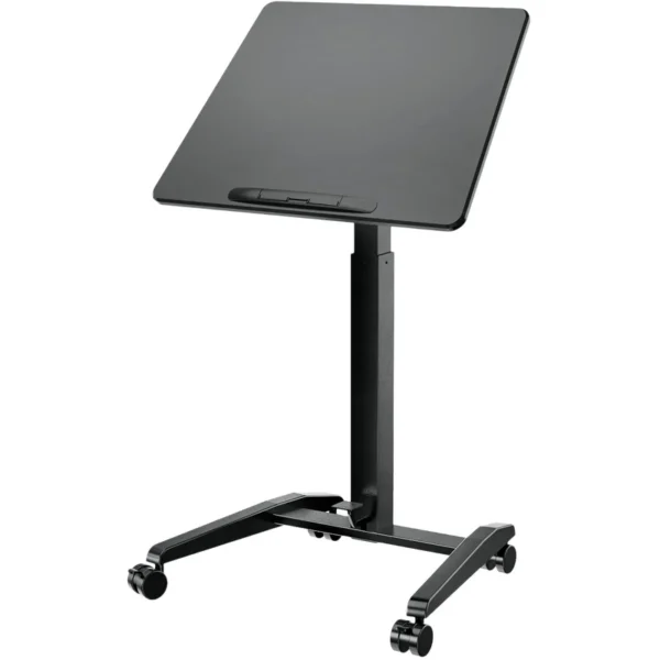 Flexible, ergonomique et mobile : ce bureau pour ordinateur portable haut de gamme a tout pour plaire. Le réglage continu en hauteur s’étend de 770 à 1 130 mm et se commande facilement par pédale. Le large plateau en MDF (695 × 520 mm) s’incline de l’horizontale jusqu’à 90°. Quatre grandes roulettes verrouillables assurent une mobilité pratique et une stabilité sécurisée. Ce modèle polyvalent est idéal pour le studio, la maison, ainsi que sur scène ou en déplacement.