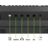 - Connexions : Alimentation CC, sortie casque/ligne (jack 1/4″), sustain (jack 1/4″), USB, microphone (jack 1/4″), entrée auxiliaire (jack stéréo 1/4″)