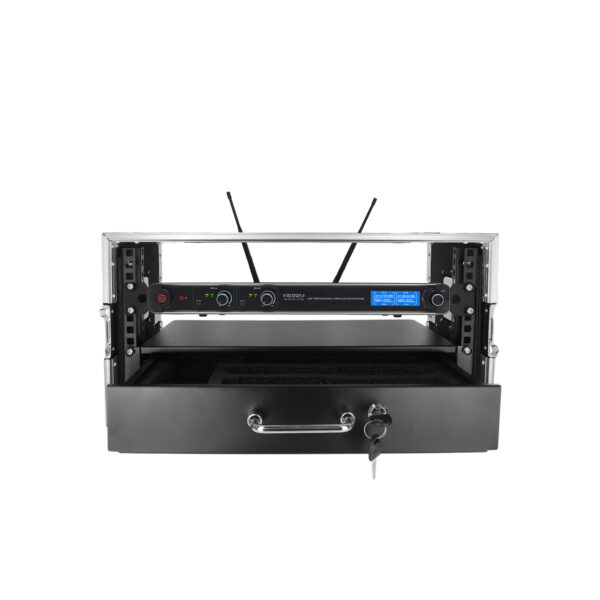 Le FT HF MIC 3U est un flight case professionnel conçu pour le transport, le rangement et l’utilisation sécurisée de vos systèmes de micros sans fil. Construit en contreplaqué robuste avec profilés en aluminium renforcé, il dispose de 3 unités rack 19” avec une profondeur utile parfaite pour les récepteurs UHF. Un tiroir de rangement intégré permet de stocker vos micros, antennes, bodypacks ou accessoires.