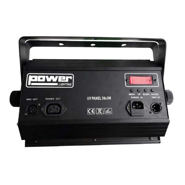 Composé de 36 leds l’UV PANEL 36x3W est le nouveau panneau à led UV de POWER LIGHTING. Il bénéficie des dernières technologies révolutionnaire de leds 3W et vous permet d’augmenter vos options de conception grâce à ses 4 modes de fonctionnements : DMX 512, son actif, automatique et maitre / esclave. Cette nouvelle génération de panel UV permettent une animation de l’intégralité des leds au rythme de la musique.