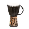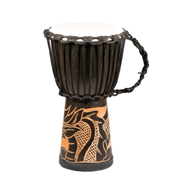 Djembé standard, sculpture de dragon à la base, pied en caoutchouc, peau de chèvre, hauteur 40 cm, diamètre 20-21 cm