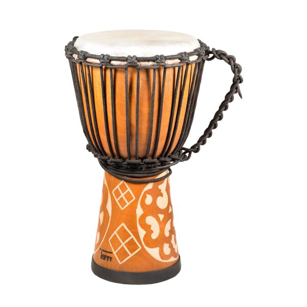 Djembé standard, sculpture maorie sur le pied, pied en caoutchouc, peau de chèvre, hauteur 40 cm, diamètre 20-21 cm