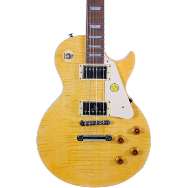 La Tokai ALS-98 LD est une déclaration d’amour au mythe LP des années 59, teintée de cette patine Lemon Drop qui évoque les guitares usées par le temps, le jeu, et la scène. Ce jaune doux et ambré, presque vieilli, rappelle les finitions originales qui ont pris la lumière des années, jusqu’à devenir des icônes. C’est une guitare au charme vintage immédiat, avec un look à la fois subtil et radicalement rock. Le corps en Acajou massif donne la densité et la chaleur attendue, avec une table en Erable qui ajoute de la brillance et du relief. Le tout est sculpté avec soin, dans le respect de la tradition, pour une résonance ample et vivante. Le manche en Acajou, collé avec précision, associé à une touche en Palissandre, procure une sensation fluide, naturelle, presque familière. C’est une guitare qui réagit au moindre frémissement des doigts, nerveuse mais souple, toujours prête à chanter ou à rugir. Les micros PAF-Vintage MkII, fidèles au grain old-school, délivrent des sonorités riches et texturées. Le micro manche est profond, velouté, presque vocal. Le micro chevalet, lui, est brillant sans agressivité, avec ce grain sablé typique des guitares bien nées, idéal pour les sons crunch ou lead expressifs. La finition Lemon Drop, sans Vernis tape-à-l’œil, donne à l’instrument ce caractère relic discret, comme un trésor retrouvé, prêt à revivre sur scène. La Tokai ALS-98 LD, c’est la classe vintage à l’état pur : une guitare chargée d’histoire, au son racé, prête à traverser les amplis et les décennies avec toi.