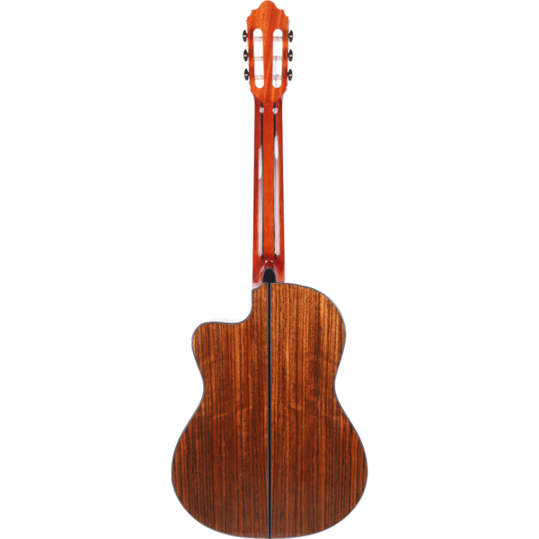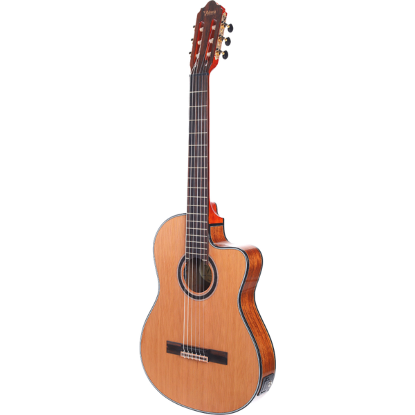 Dotée d’une table en cèdre rouge massif, d’un barrage breveté et d’un corps en noyer de 7cm, la VC774TCE produit une sonorité incroyablement détaillée et équilibrée malgré son corps « slim ». Le manche en acajou de qualité supérieure ainsi que la touche en ébène Amara font de cet instrument une guitare confortable et réactive. Le système de préamplification Fishman Sonitone embarqué fait également de cette guitare le compagnon idéal pour toutes les prestations sonorisées. Enfin les nombreux détails qu’offre la VC774, tels que la rosace en bois véritable, les décorations sur le chevalet ou encore les mécaniques, contribuent à donner un aspect haut de gamme à cette guitare surprenante.
